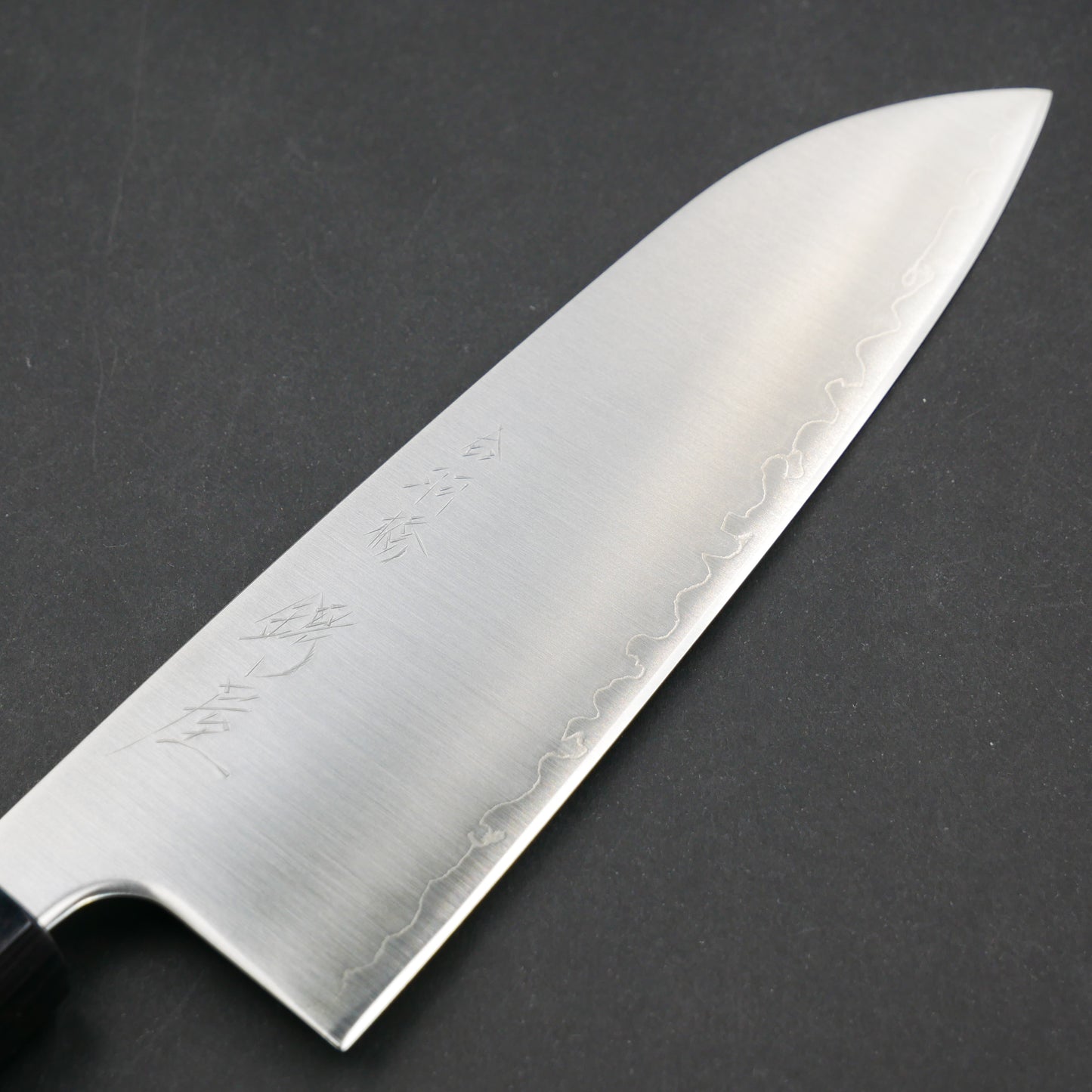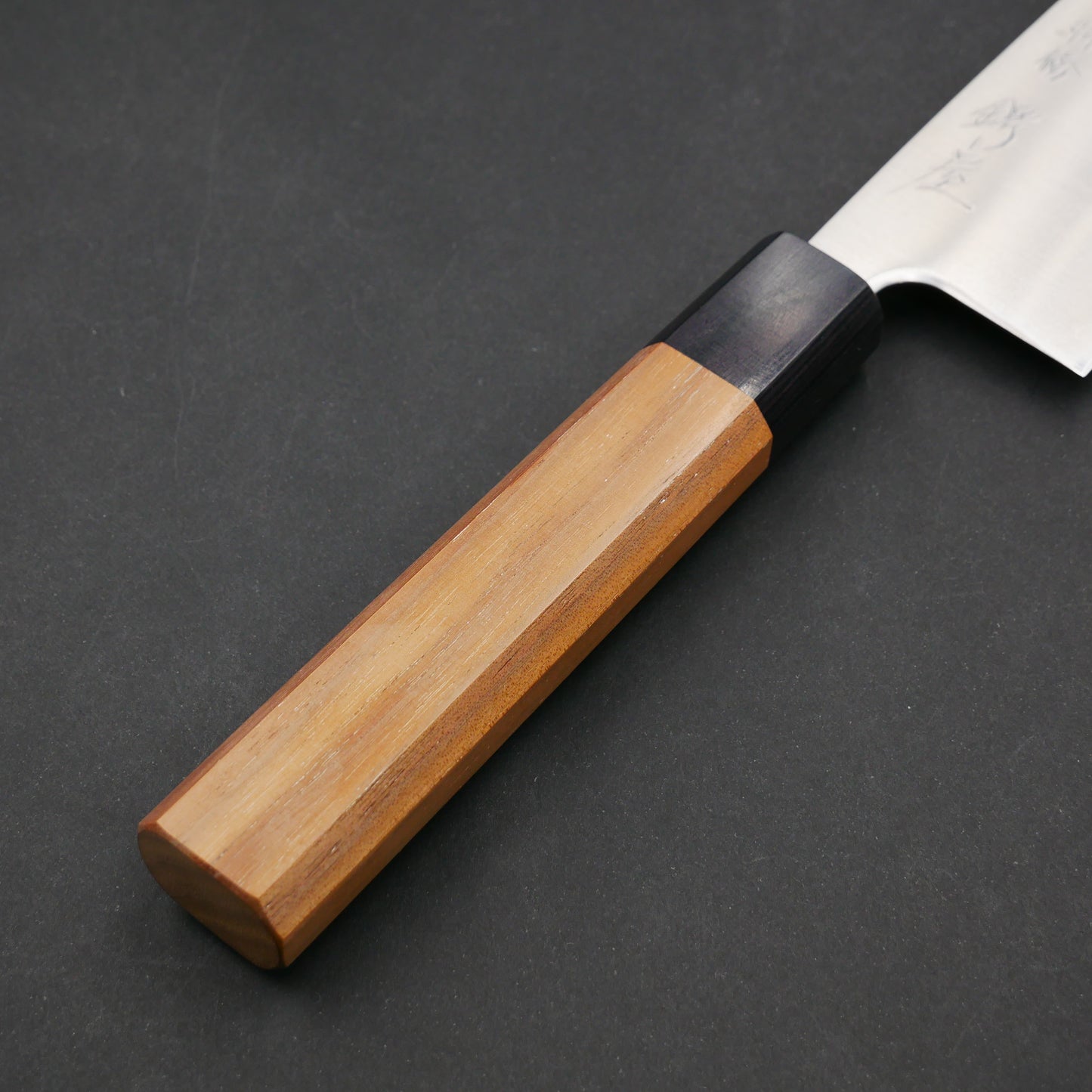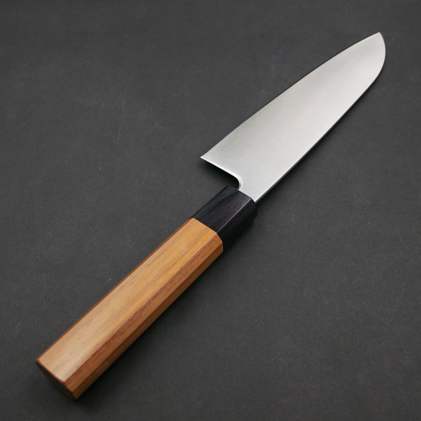 BlueSuper Carbon Steel StainlessClad Santoku Walnut Octagonal Handle
