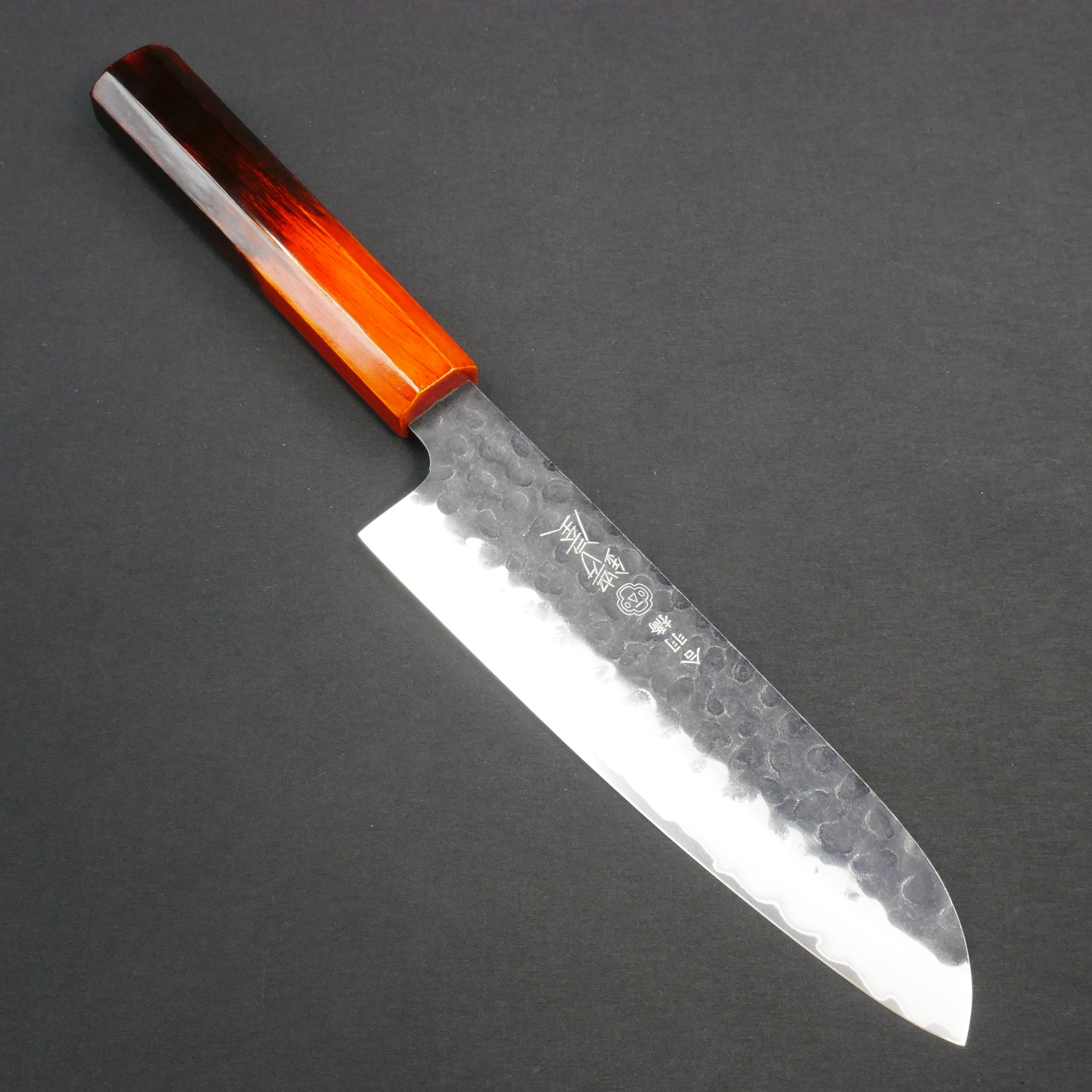 Molybdenum Vanadium Steel Kurouchi Tsuchime Santoku Oak Urushi Octagonal Handle