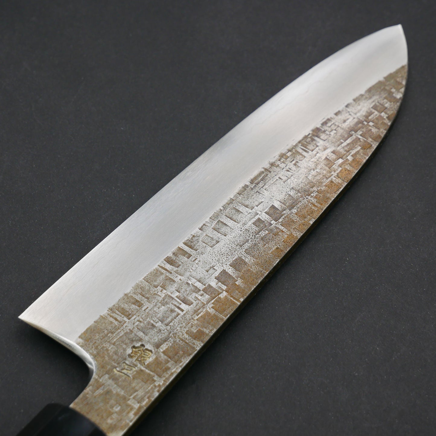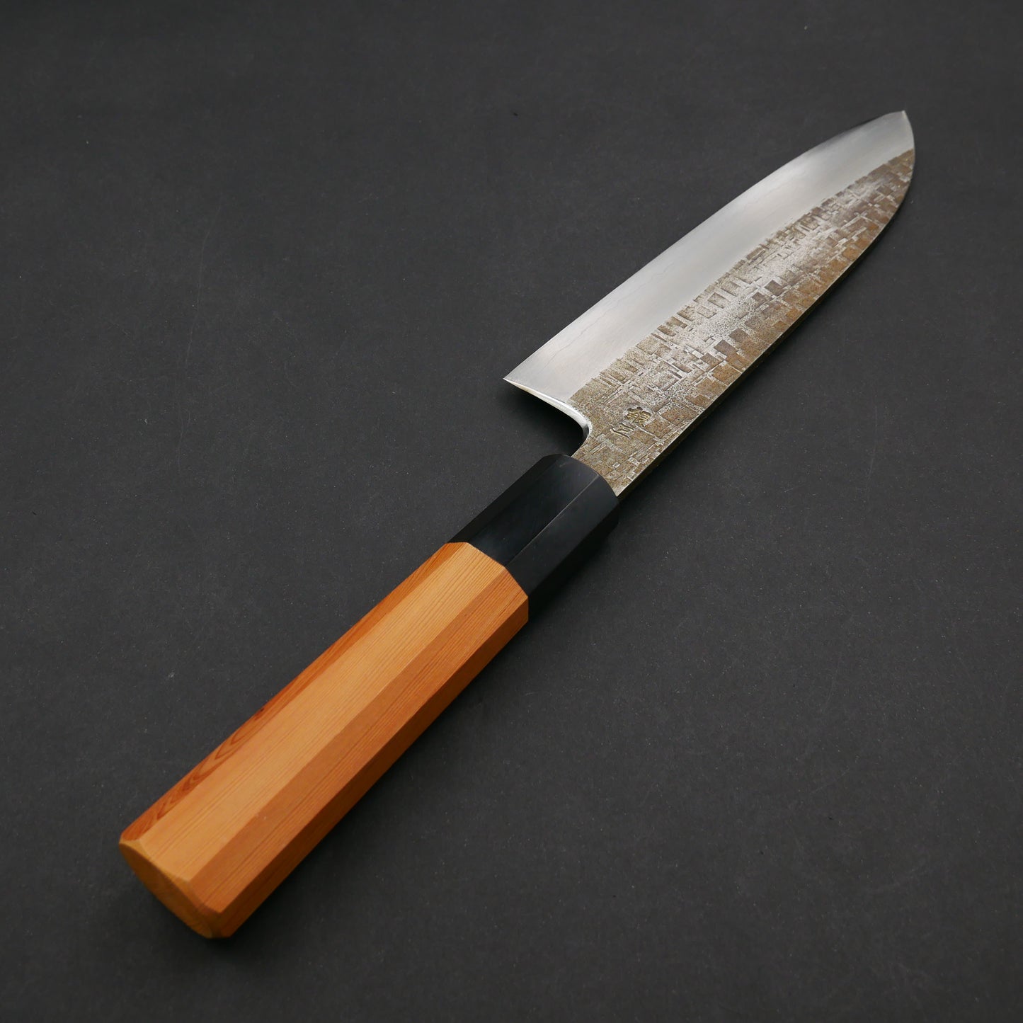 Silver#3 Stainless Steel Kurouchi Tsuchime Santoku Japanese Yew Octagonal Handle