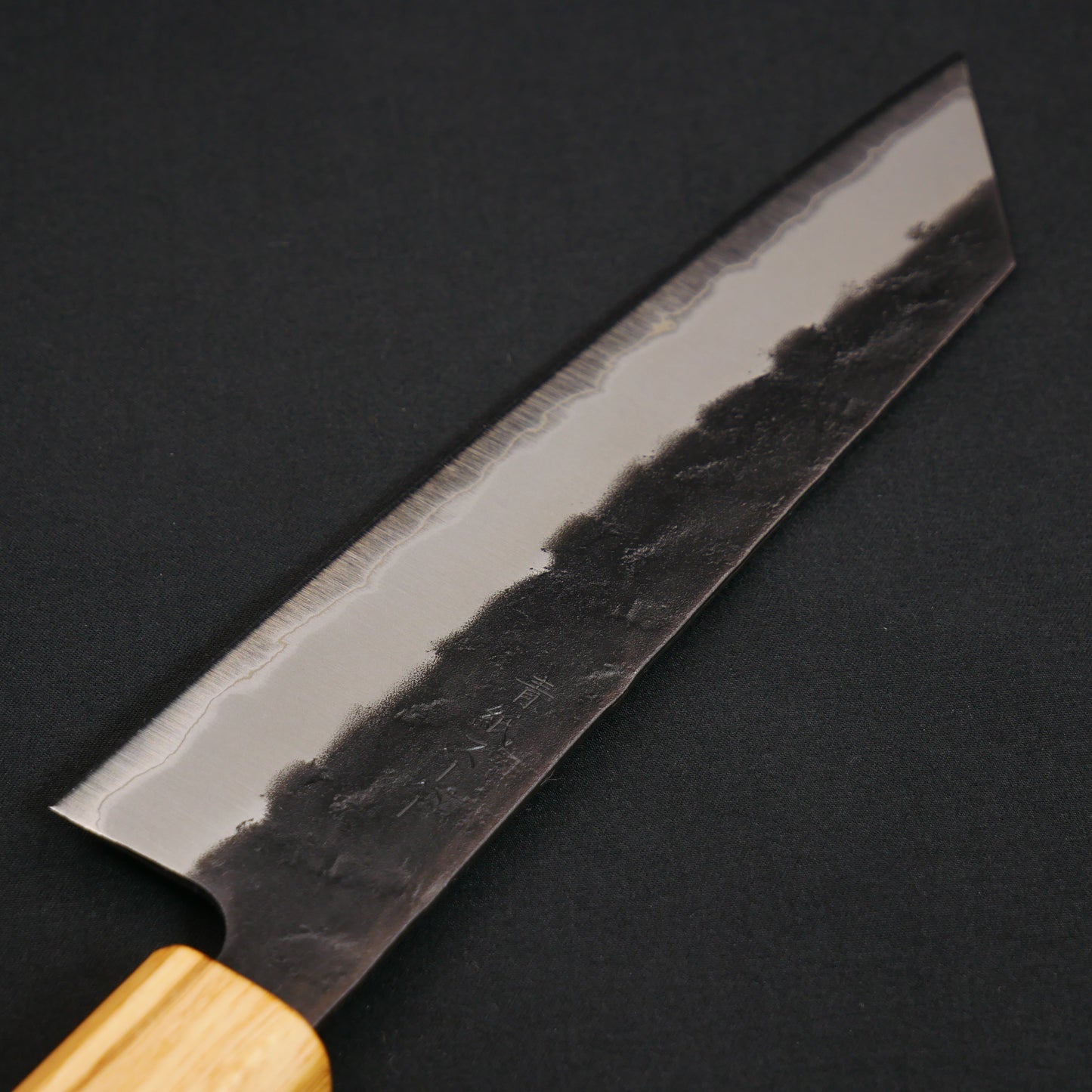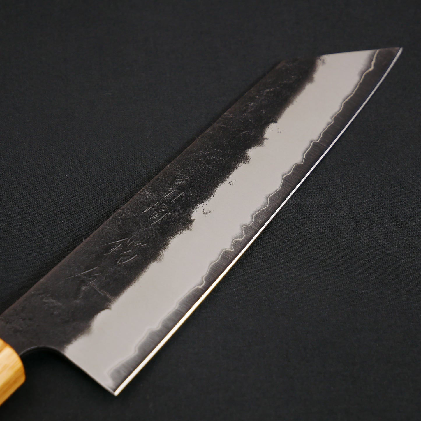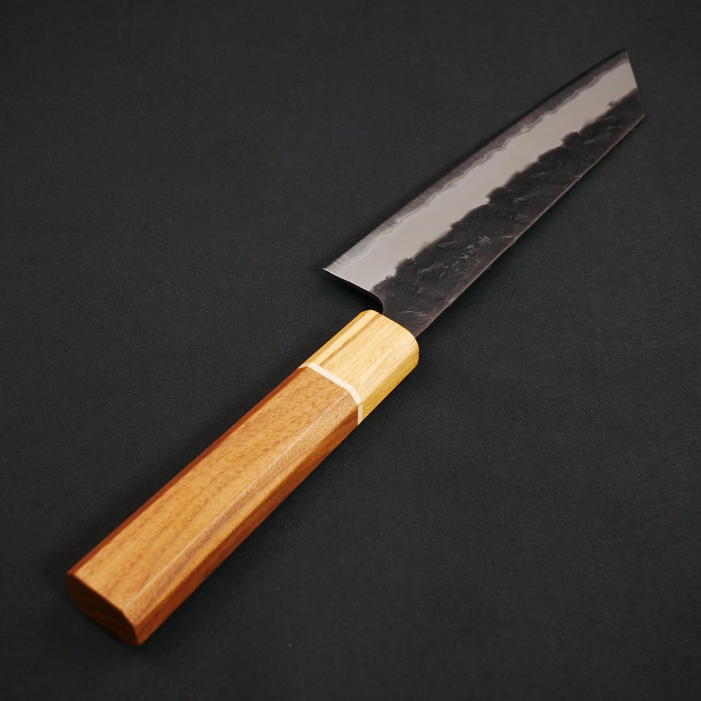 青紙スーパー 黒打 梨地 切付三徳 ウォールナット八角柄