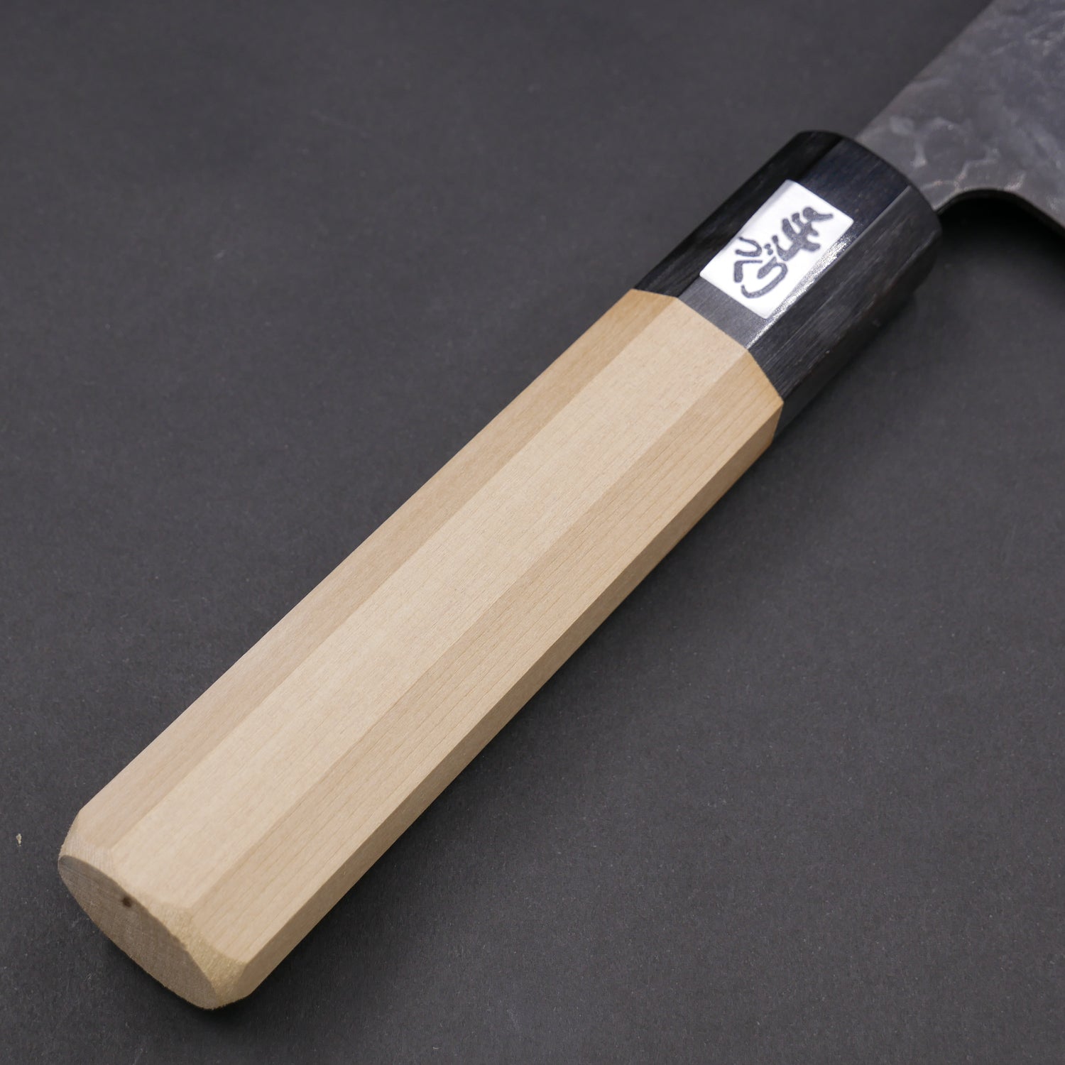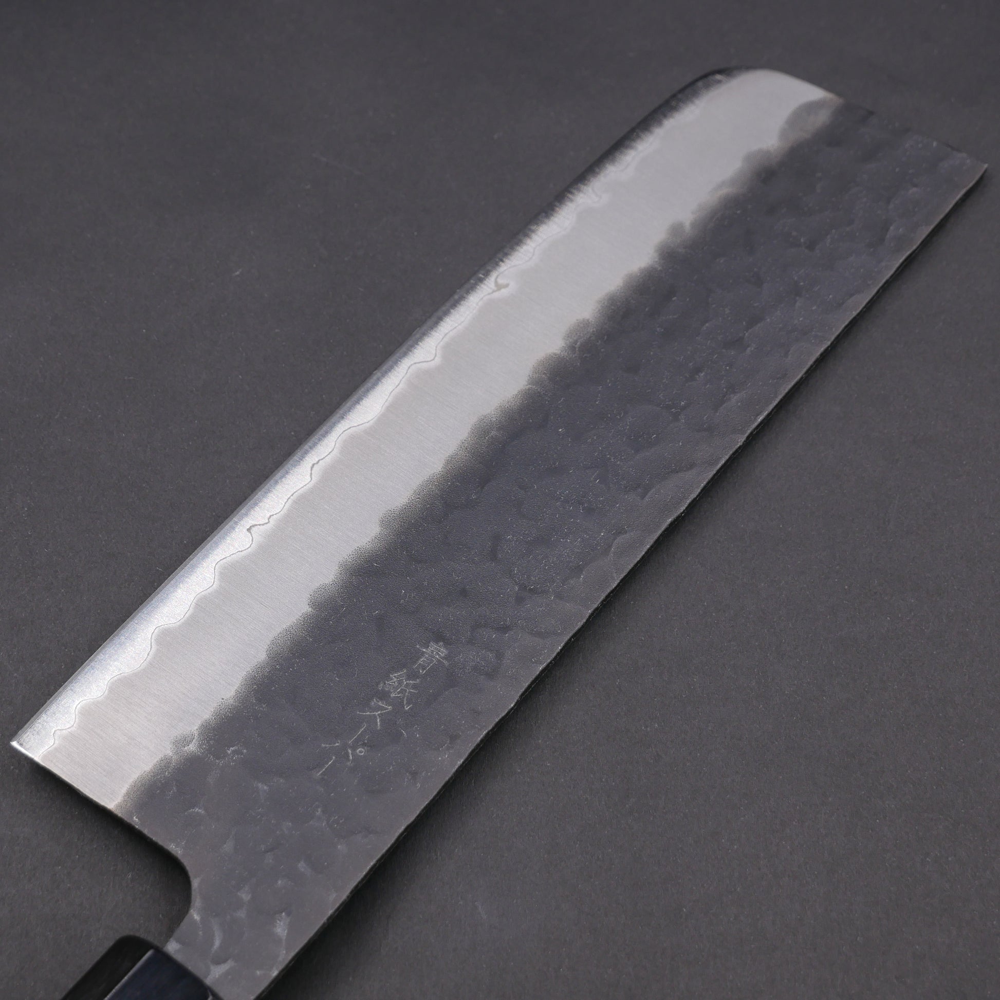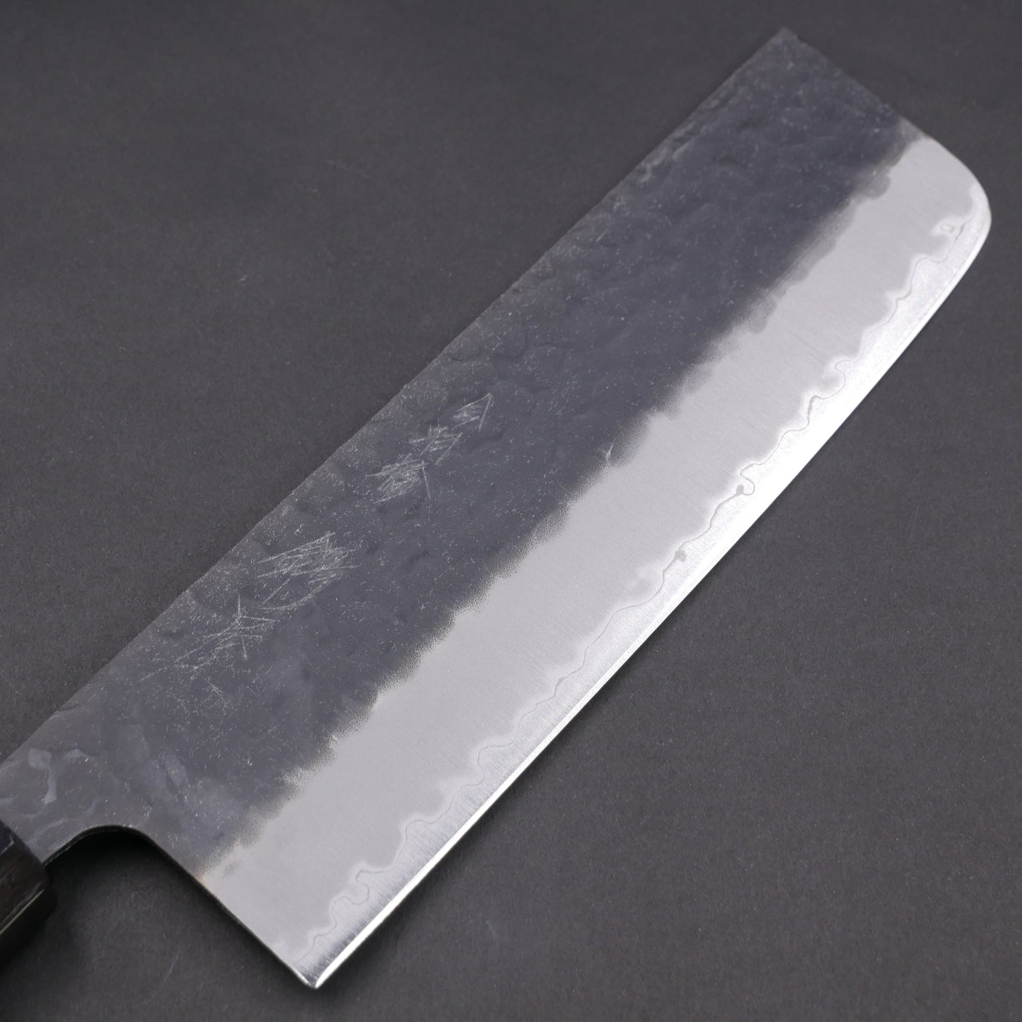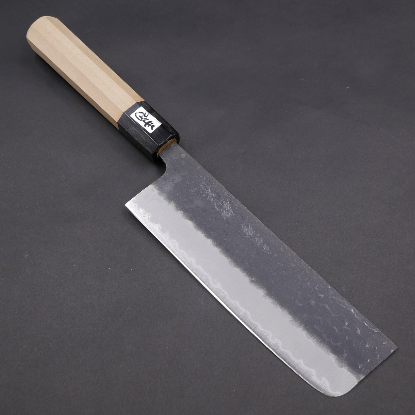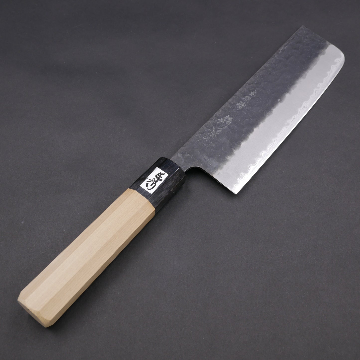 青紙スーパー 黒打 鎚目 ステンレス割込 菜切 朴八角柄