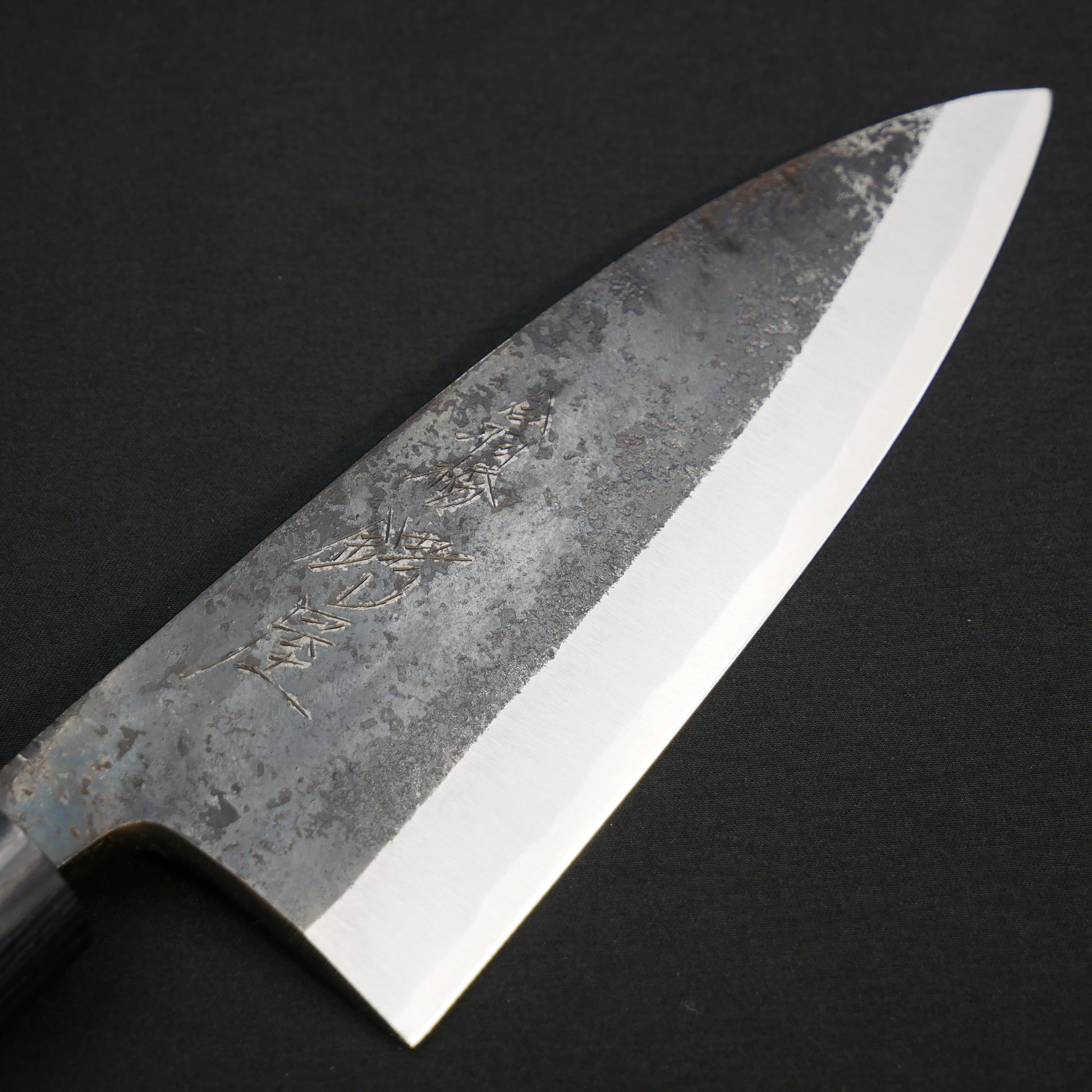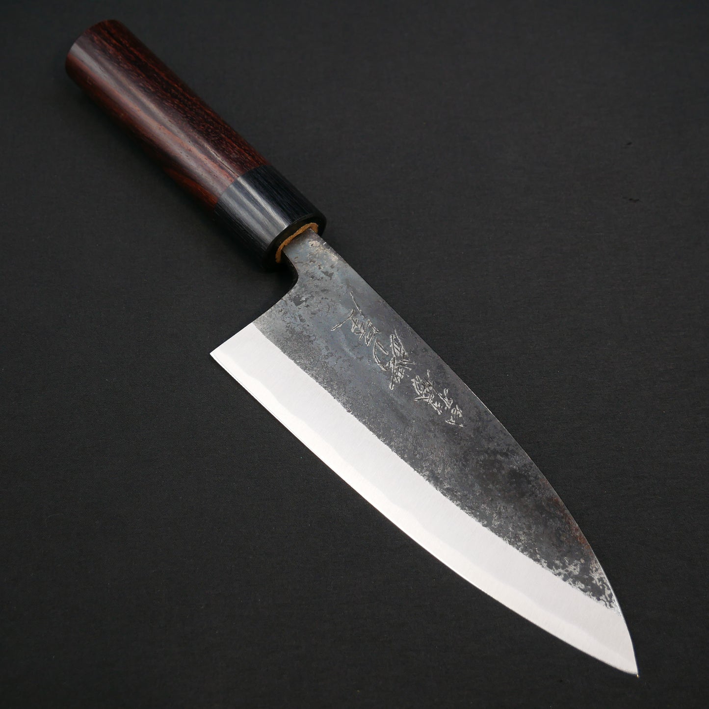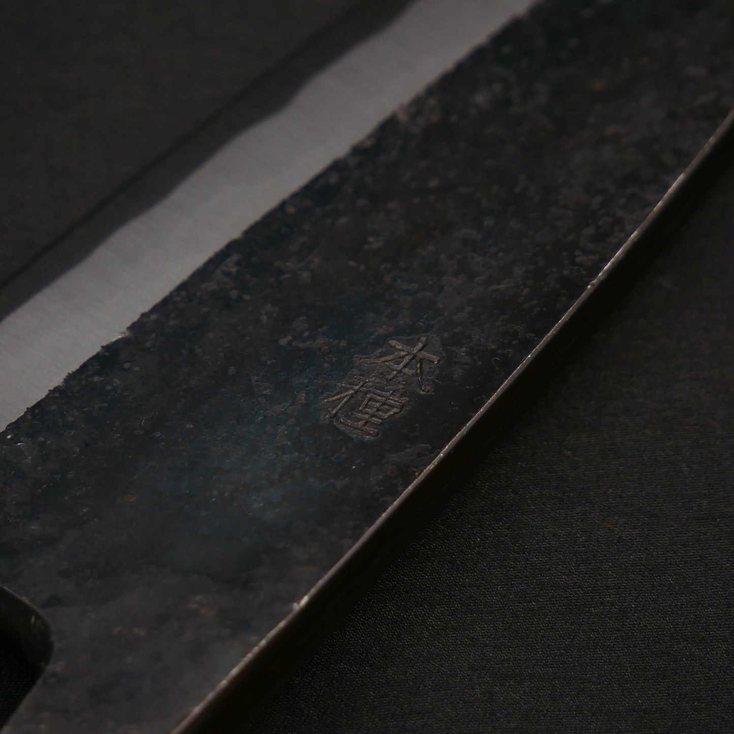 本種子島 青二鋼 黒打 出刃 紫檀柄 (両刃)