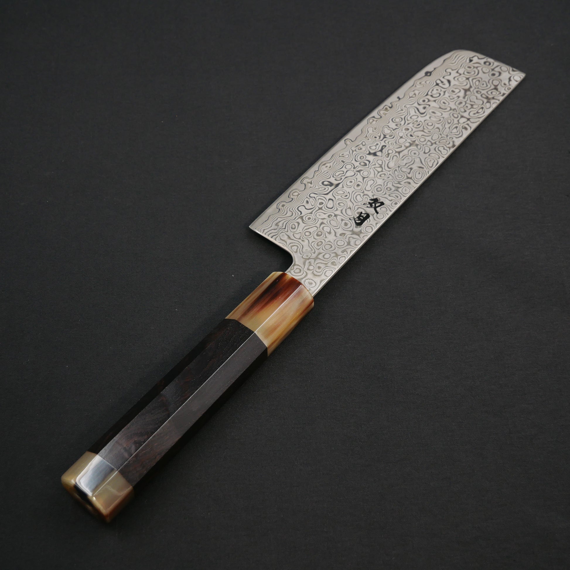 モリブデンバナジウム鋼 67層 ダマスカス 菜切 黒檀八角柄