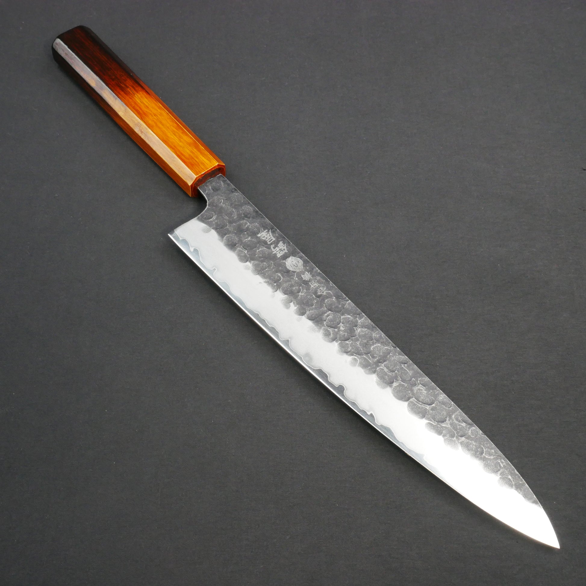 モリブデンバナジウム鋼 黒打 鎚目 牛刀 樫漆八角柄