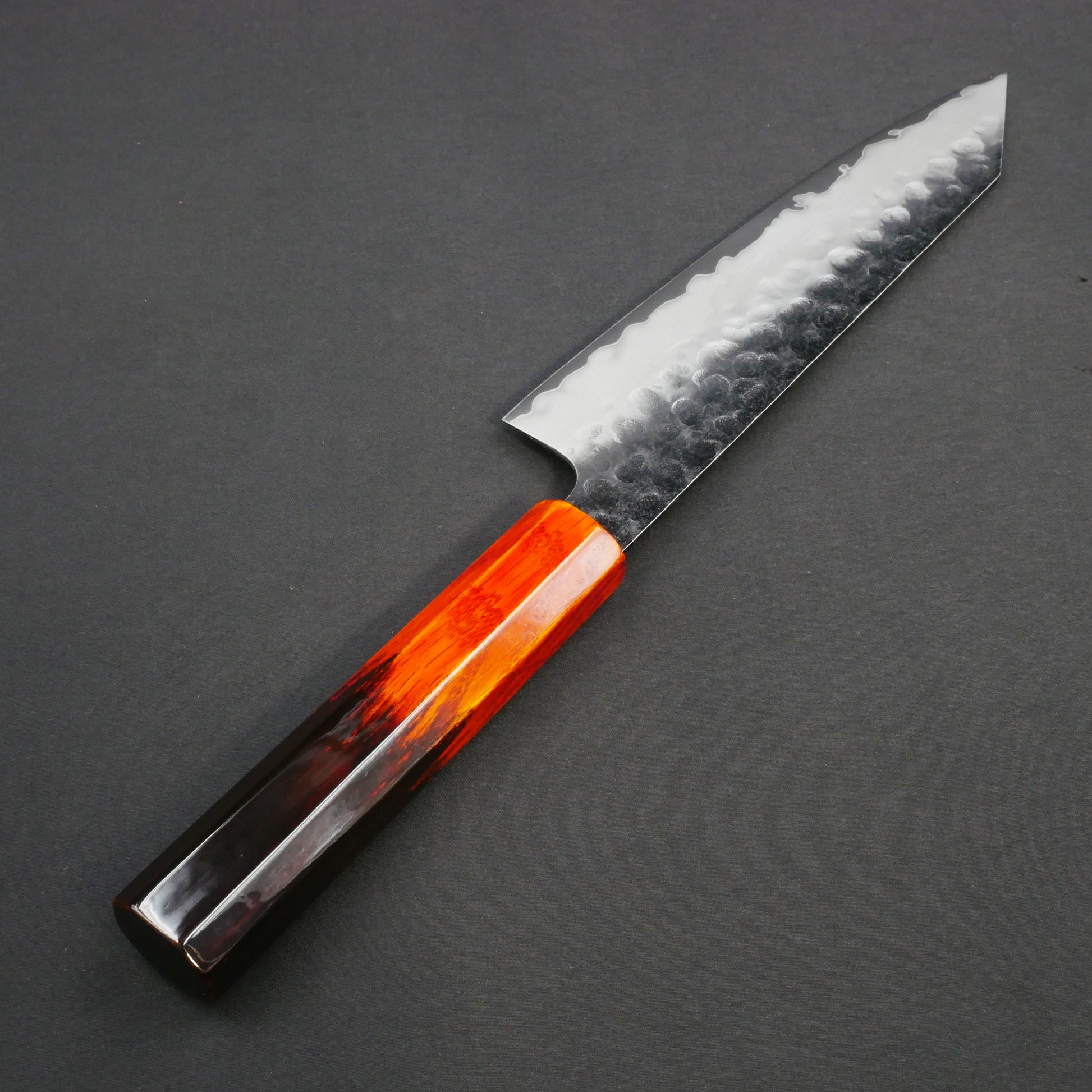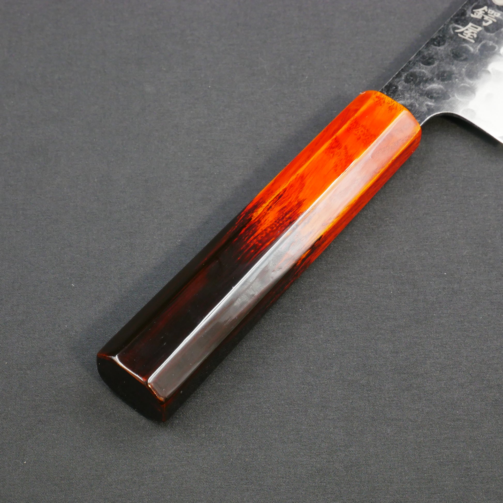 モリブデンバナジウム鋼 黒打 鎚目 切付三徳 樫漆八角柄