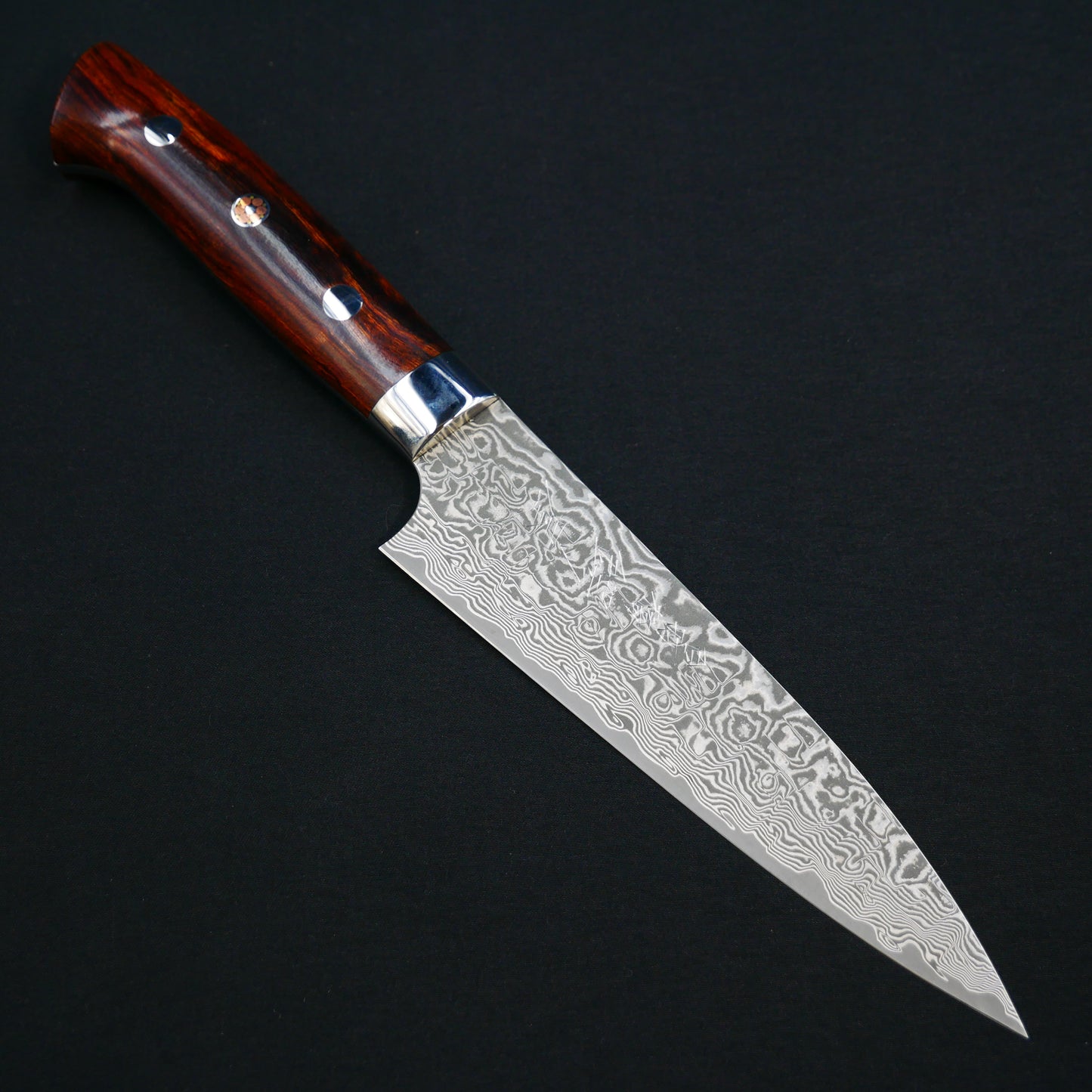 佐治武士 粉末ハイス鋼 63層 ダマスカス ペティ アイアンウッド柄