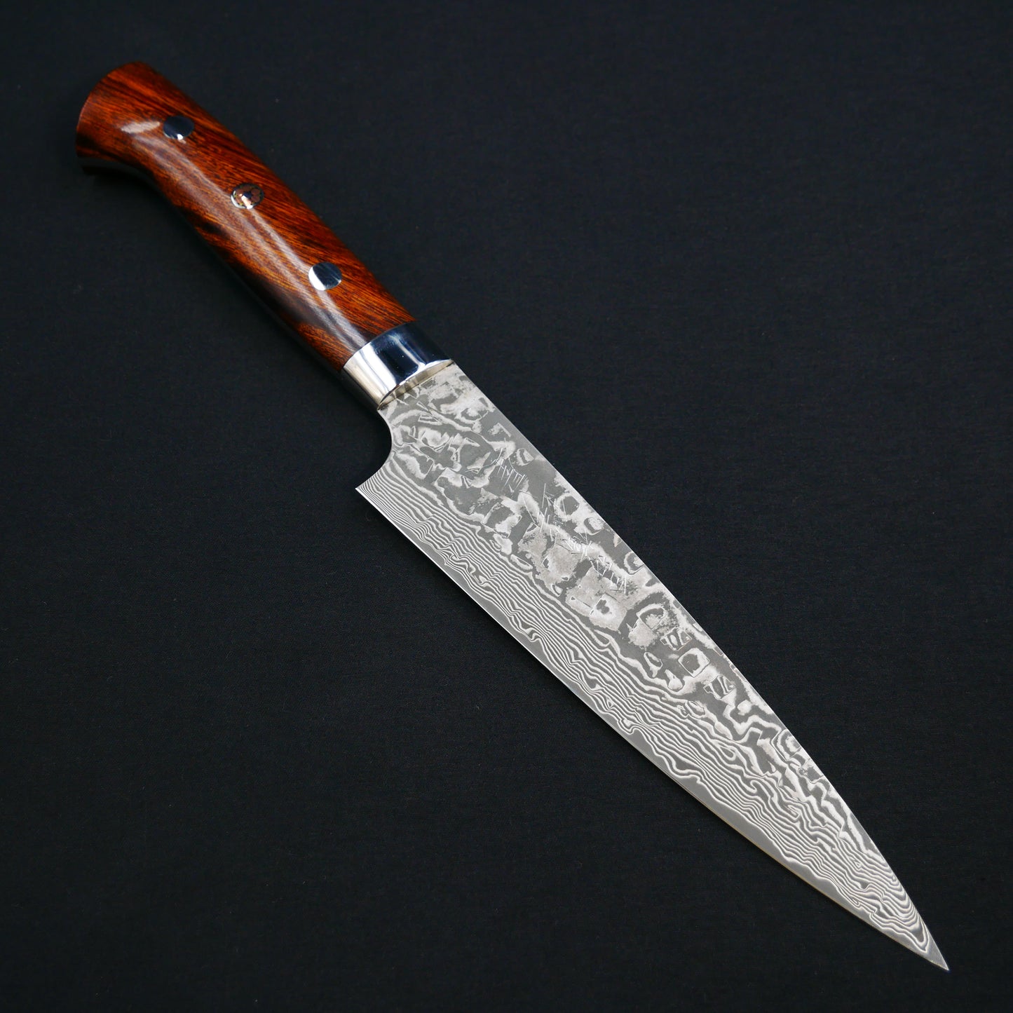 佐治武士 粉末ハイス鋼 63層 ダマスカス ペティ アイアンウッド柄