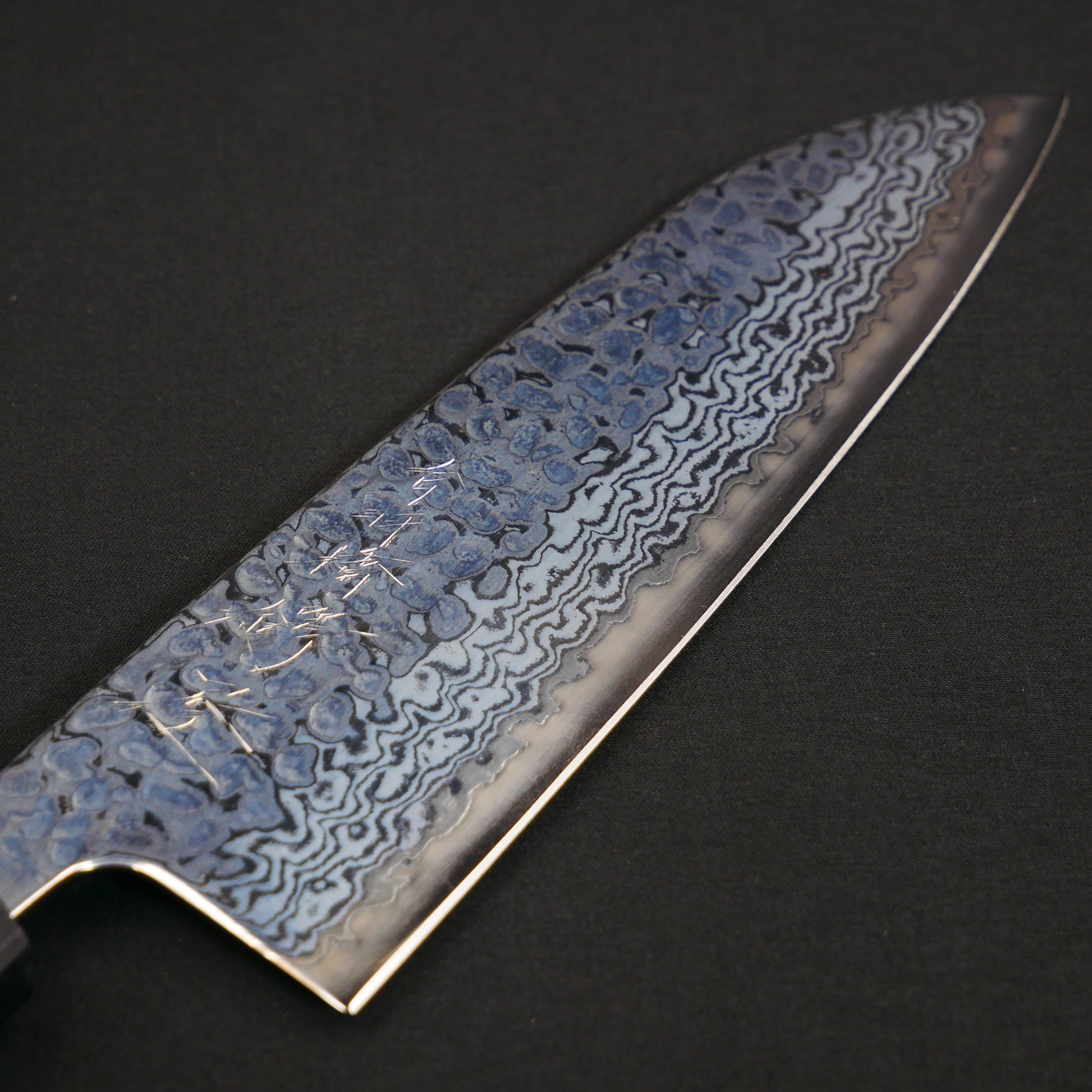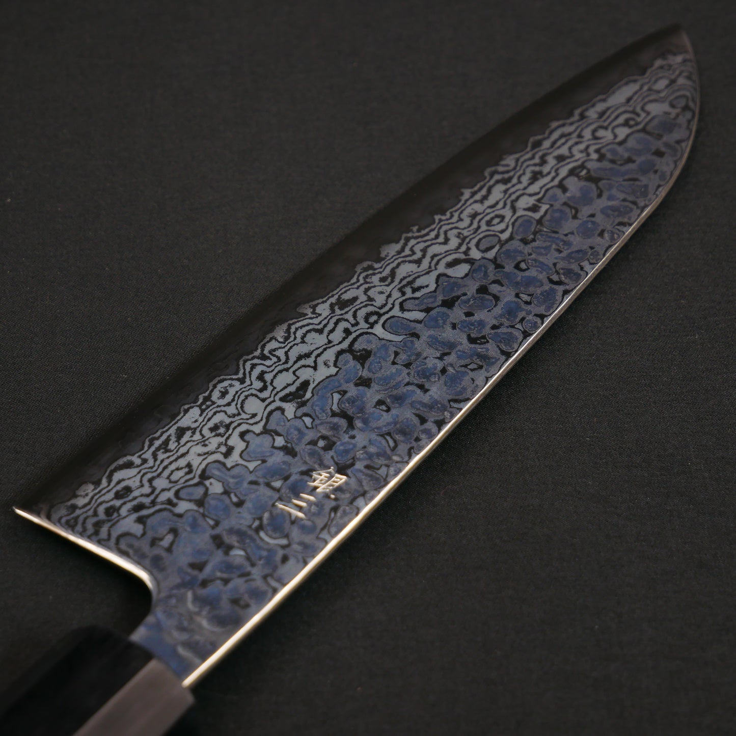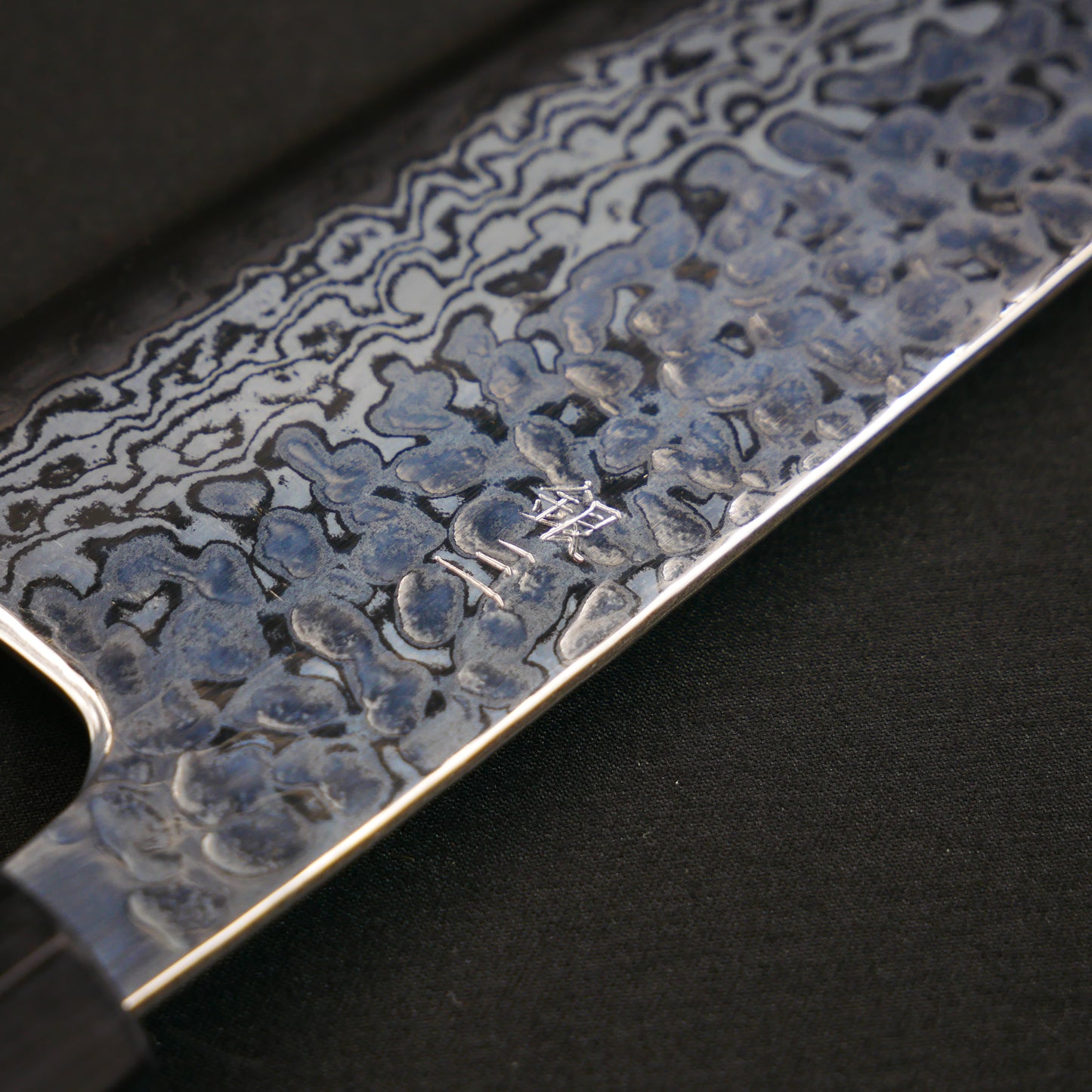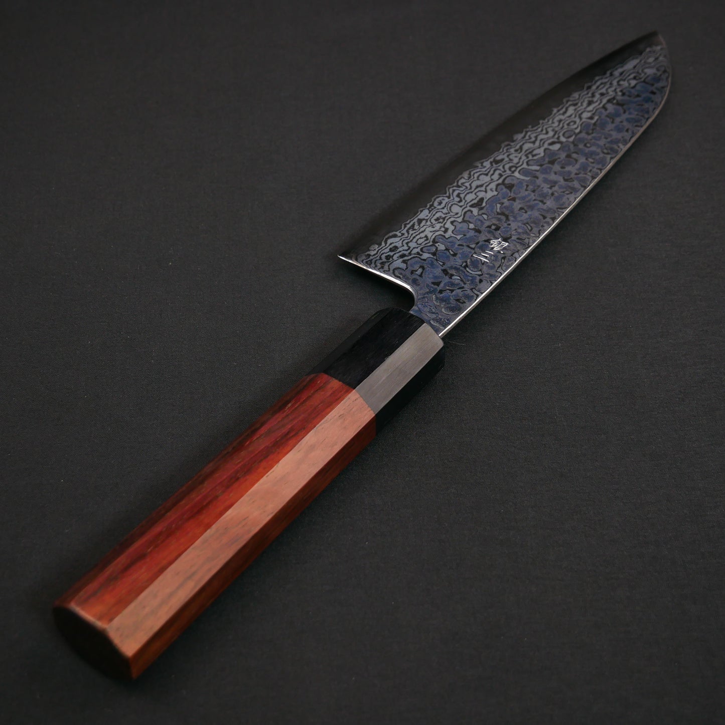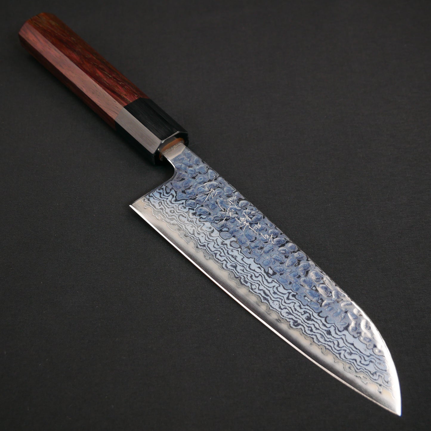 銀三鋼 鎚目 ダマスカス 三徳 紫檀八角柄