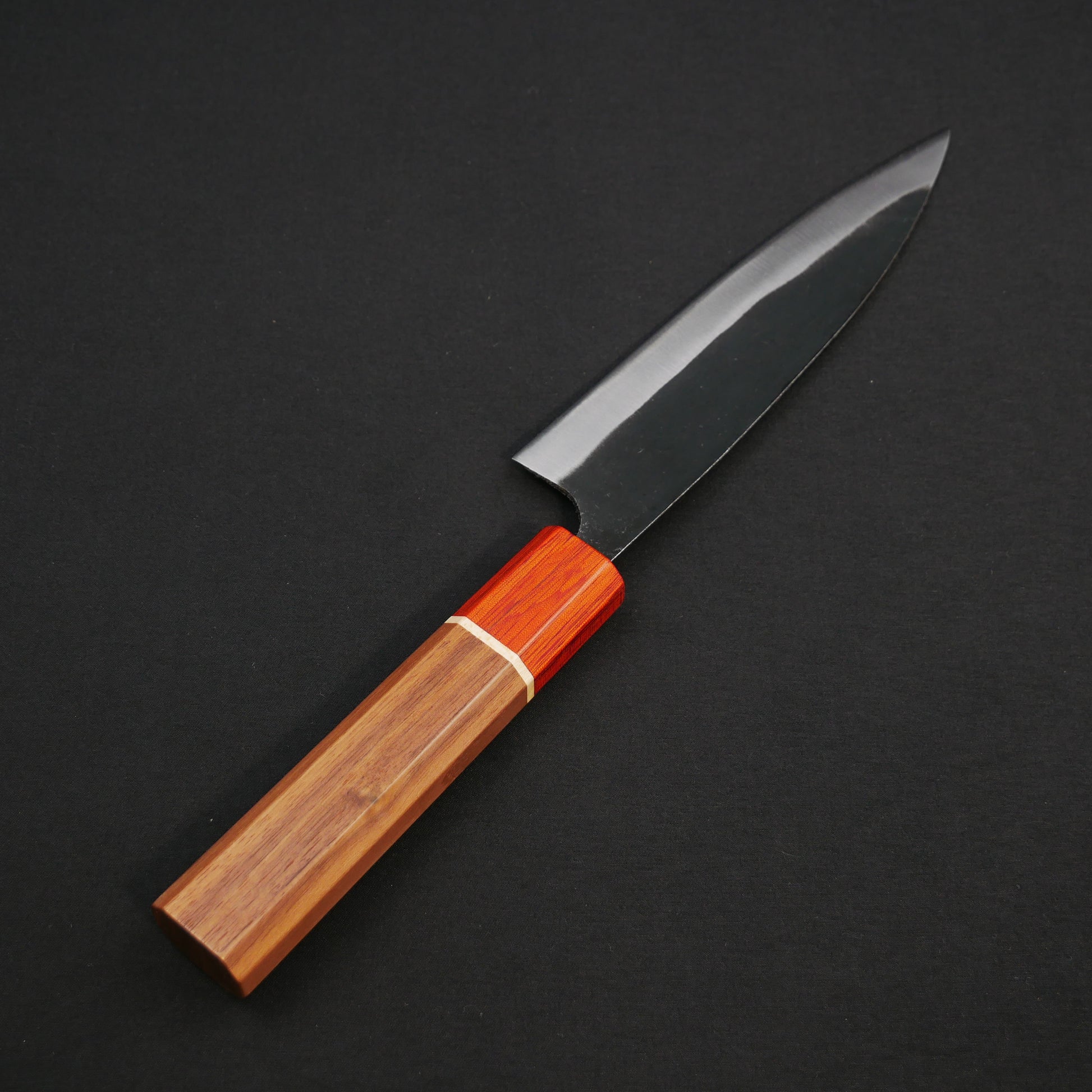 白二鋼 黒打 幅広ペティ ウォールナット八角柄